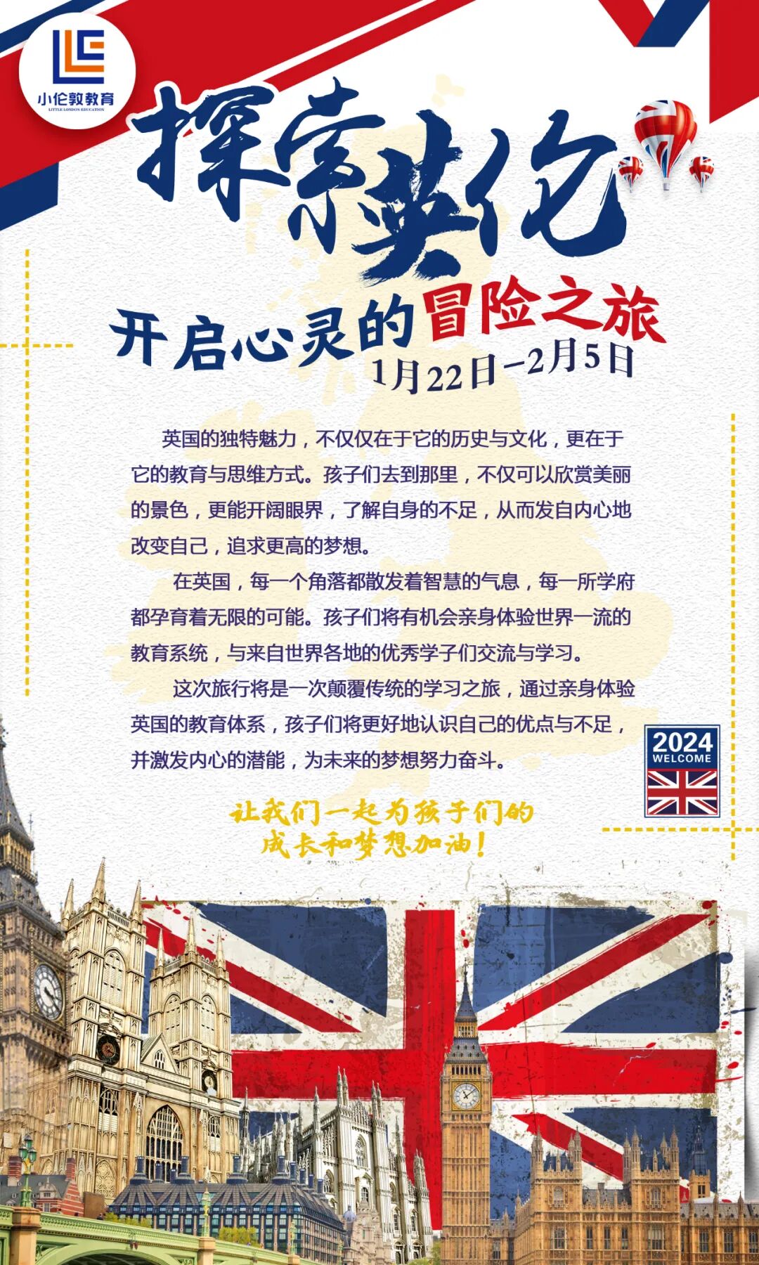 小伦敦国际营是一家专注于国际游学的机构,我们致力于为学生们提供独特而有意义的学习体验。在这次哈利波特之旅中,你们将不仅仅是观光,更是亲身参与其中,感受到哈利波特的魔法魅力。我们相信,这将是一次让你们终身难忘的旅程!